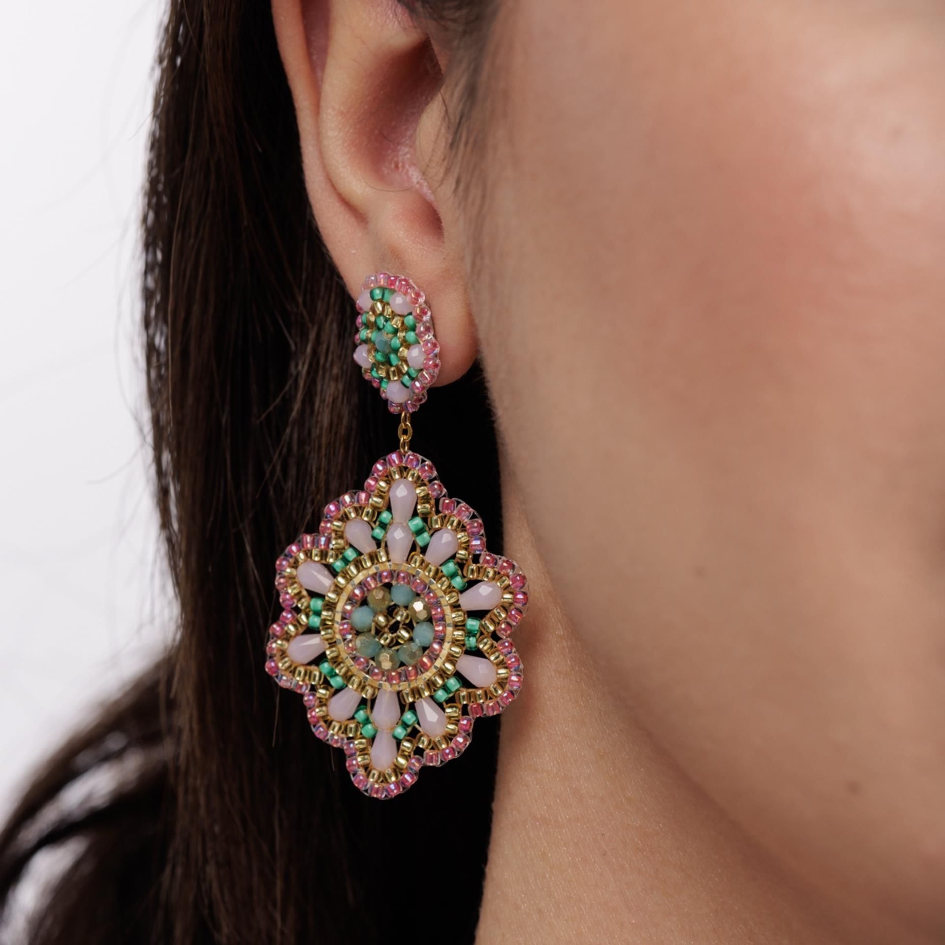 I bellissimi orecchini a perno a forma di fiore, realizzati con perle giapponesi rosa chiaro e verdi, sono un'attrazione speciale, soprattutto in combinazione con i gioielli da braccio abbinati. Gli orecchini sono realizzati in titanio e sono quindi estremamente adatti alle allergie. Il comfort di indossamento super leggero rende questi orecchini fatti a mano uno dei nostri preferiti in assoluto e sono disponibili in molte combinazioni di colori. Lunghezza totale circa 6,5 cm.