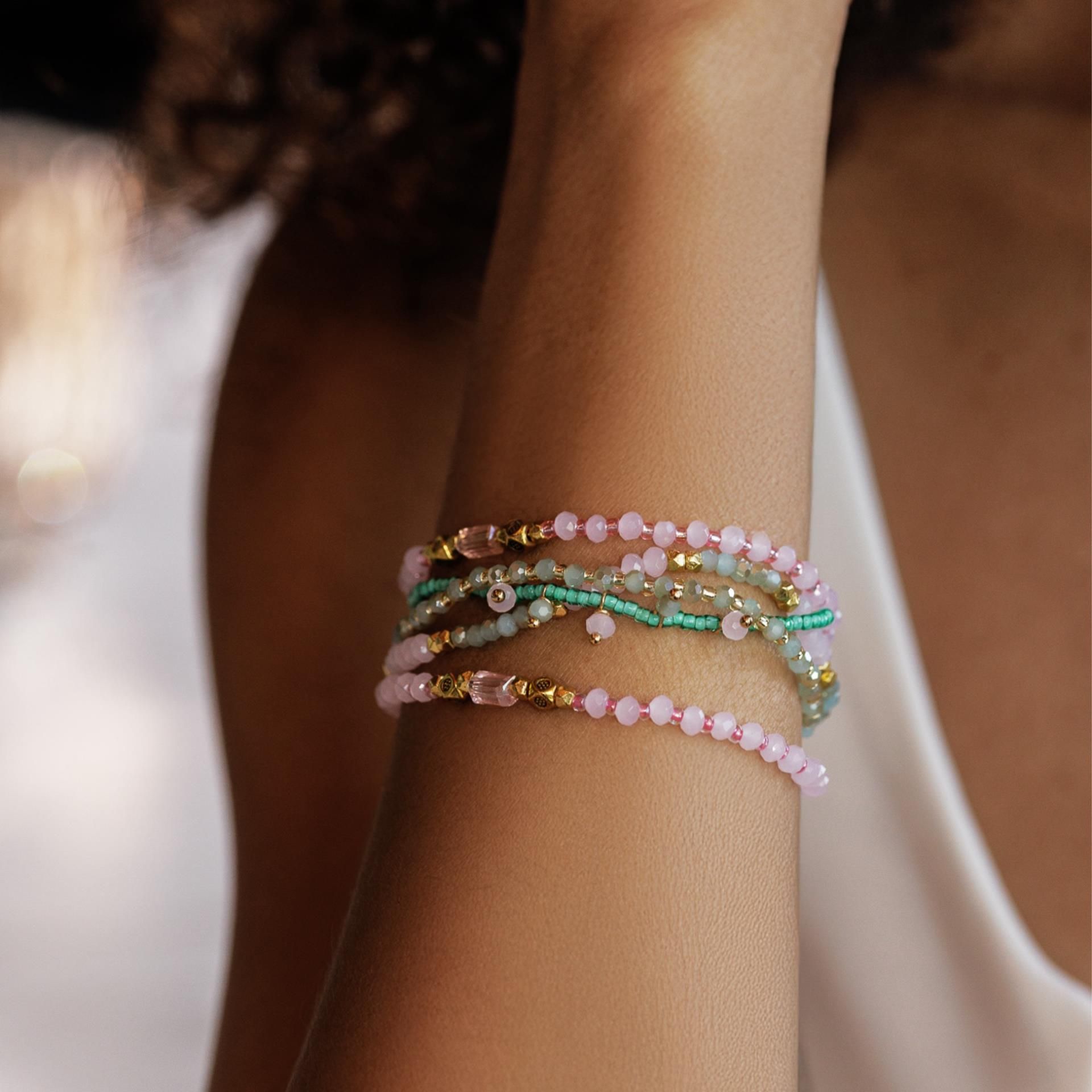 Bracciale a 5 vie Rosa chiaro/Verde