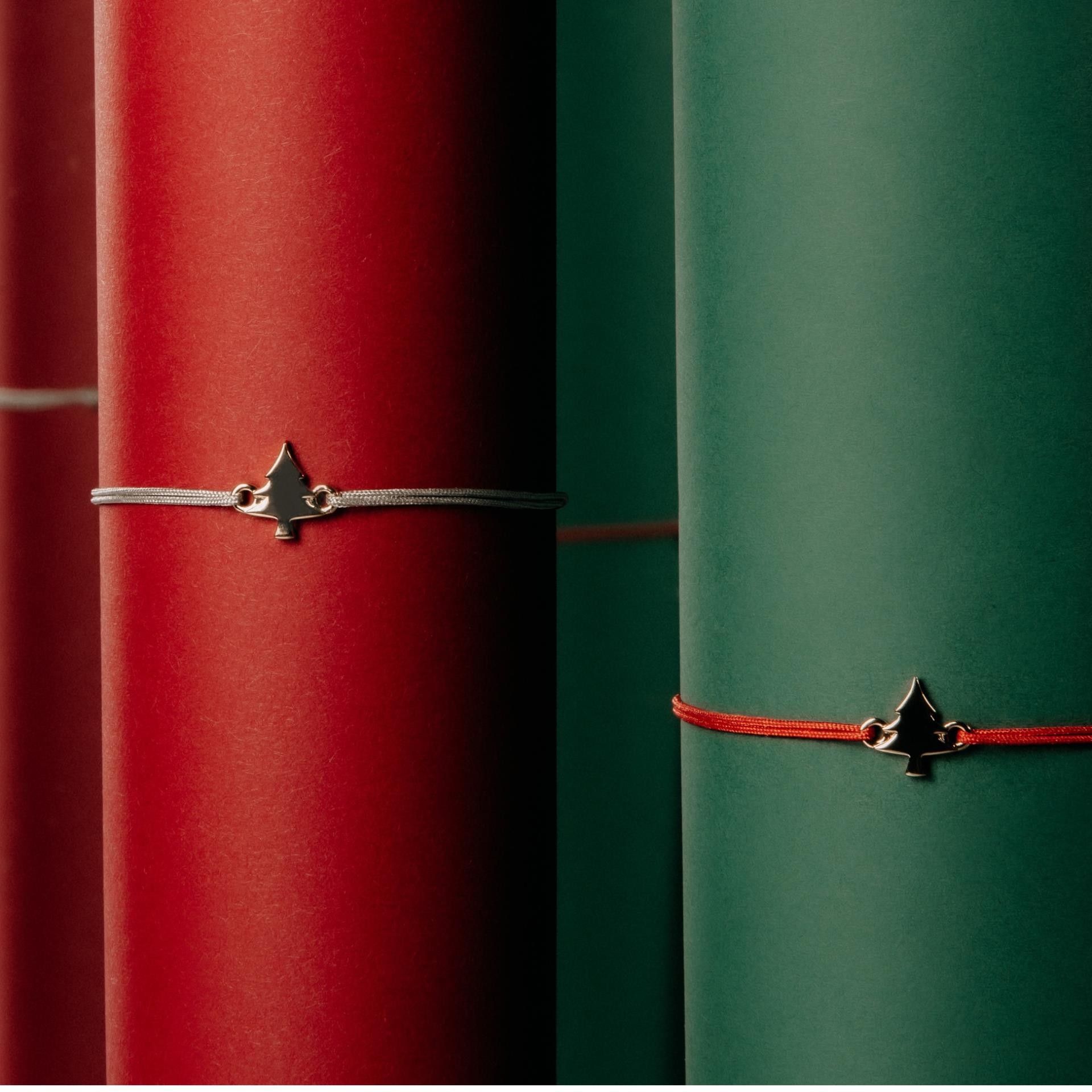 Ho ho ho! La stagione delle feste è alle porte e quale modo migliore di rappresentare il periodo più bello dell'anno se non con un albero di Natale? Portate lo spirito natalizio al vostro polso! Il bracciale in tessuto grigio è regolabile e si adatta perfettamente a qualsiasi polso. L'incantevole ciondolo a forma di albero di Natale è placcato in oro.