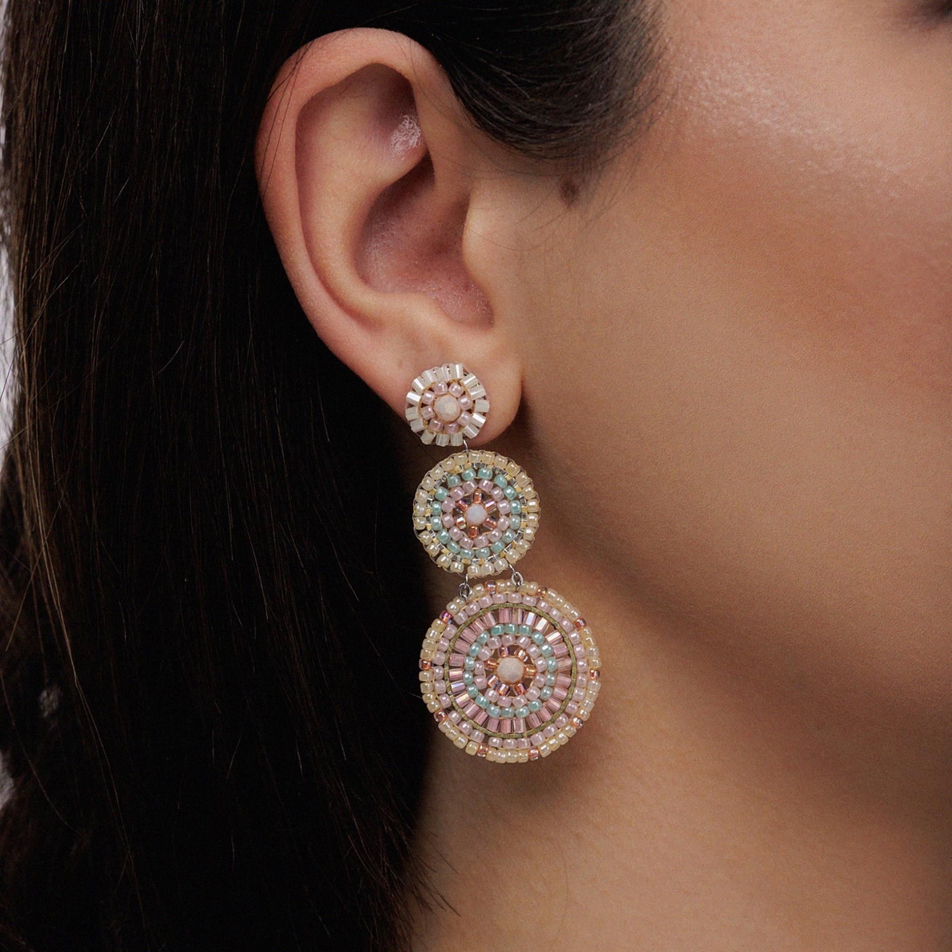 Questi bellissimi orecchini a clip fatti a mano con tre cerchi di perle giapponesi in attraenti colori pastello sono un vero e proprio richiamo visivo. La chiusura a clip non è troppo stretta, comoda da indossare e ben tollerata. Lunghezza totale circa 6 cm.