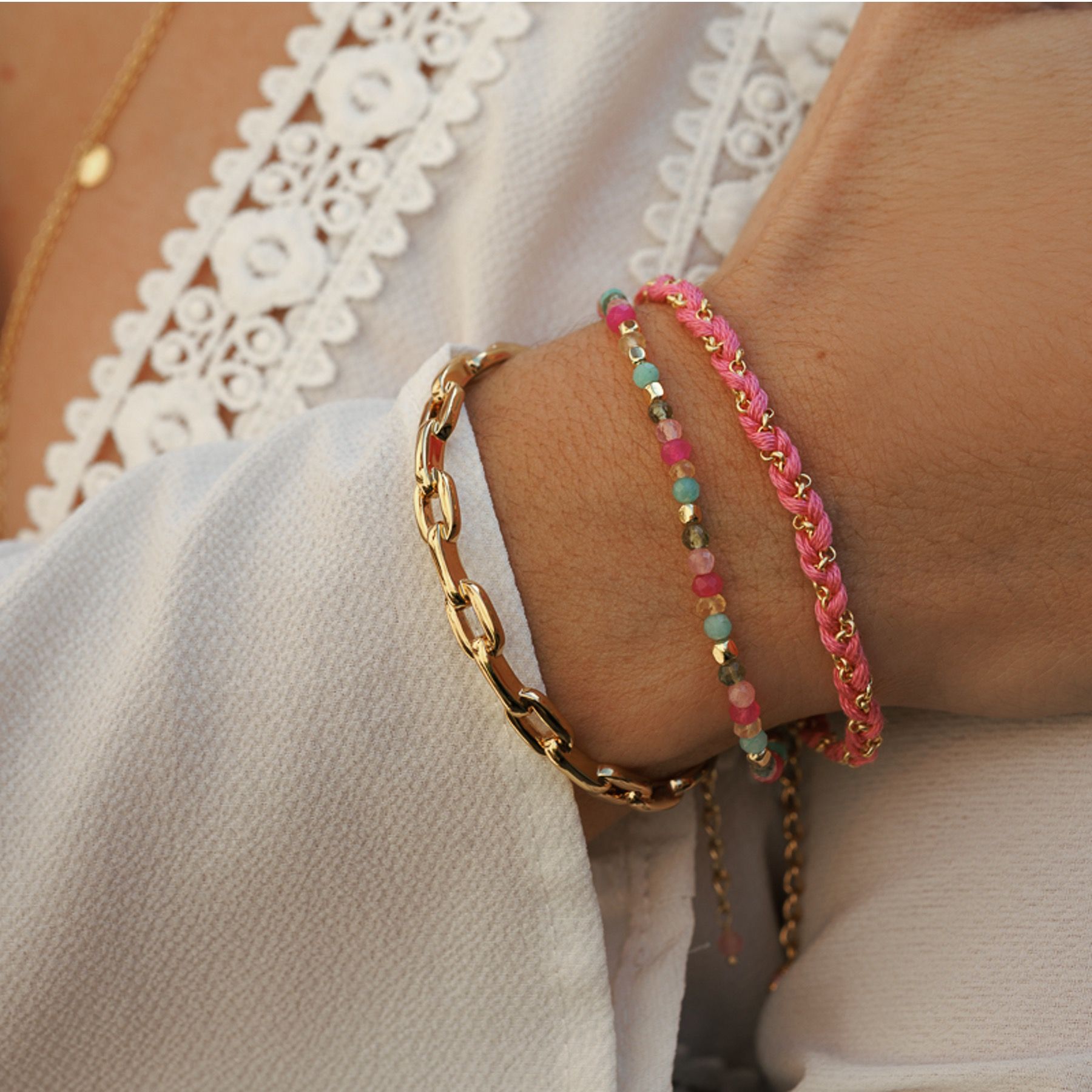 Il pezzo It dell'anno! Questo elegante gioiello presenta un design a maglie alla moda ed è placcato in oro. Ci piace!