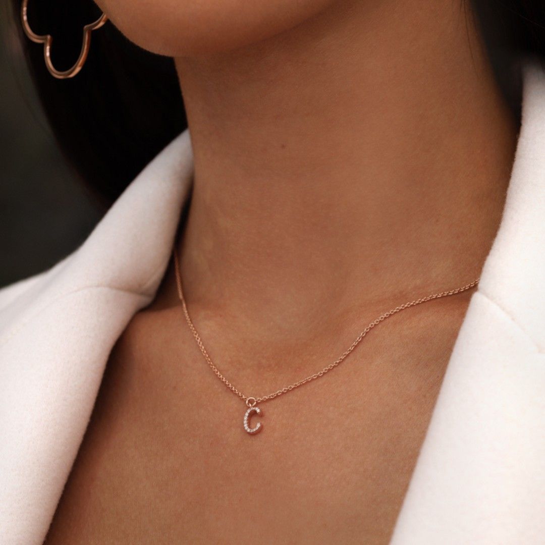 Splendida collana placcata oro rosa con ciondolo a forma di lettera. Il delicato ciondolo a forma di lettera è tempestato di cristalli e incanta per la sua delicatezza. Un regalo personalizzato perfetto per una persona cara.