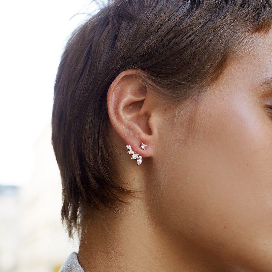 Incantevoli giacchini per orecchie con delicati cristalli. Una parte è fissata davanti al lobo e una parte dietro, creando un look moderno.