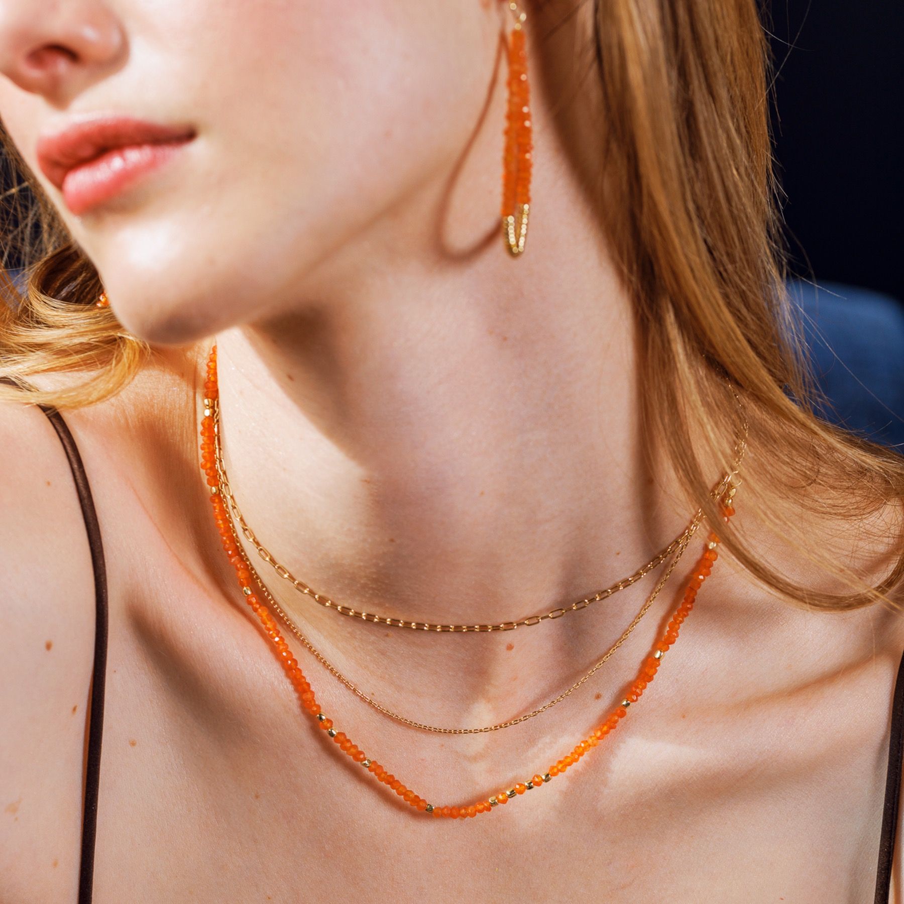 Il nostro pezzo forte della stagione: orecchini a goccia leggerissimi con vere pietre di corniola e perle color oro su un gancio placcato oro. Un grande colpo d'occhio che si abbina perfettamente a qualsiasi outfit estivo. Disponibili in diversi colori, ciascuno con collana e bracciale abbinati. Ci piace! Lunghezza totale circa 6 cm.