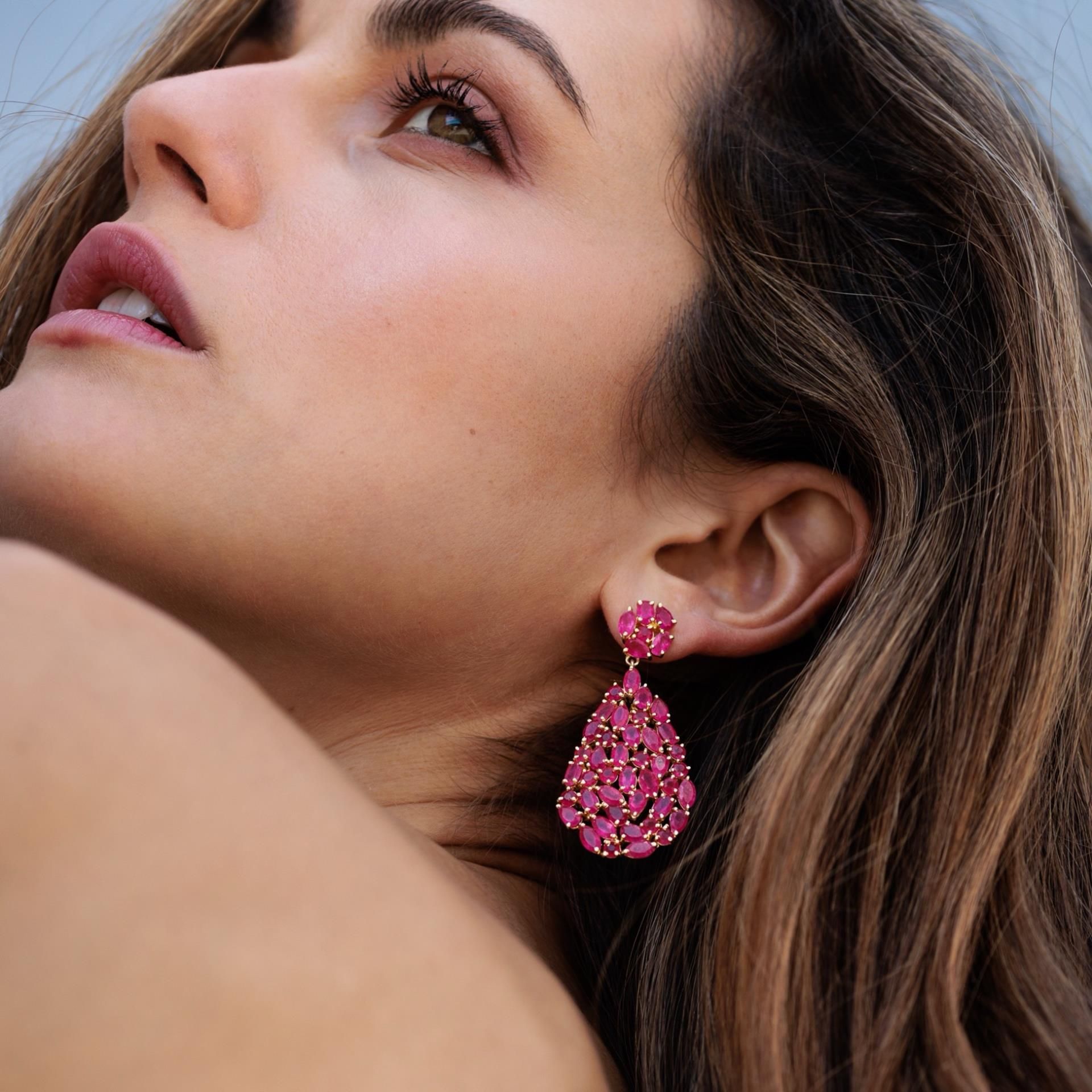 Orecchini unici placcati in oro con vere pietre di giada rosa. Le pietre sono incastonate a mano e rendono gli orecchini un incredibile richiamo visivo. La lunghezza totale degli orecchini è di 5 cm.