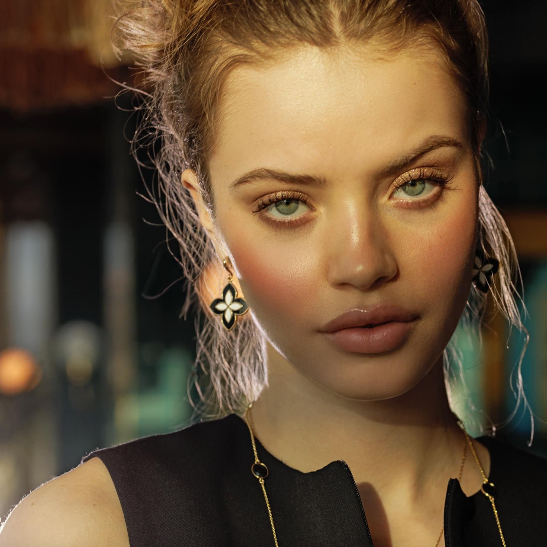 Questi splendidi orecchini a fiore placcati in oro sono smaltati in bianco e nero. Un design estivo, giocoso ma molto elegante. Lunghezza del pendente circa 3 cm.