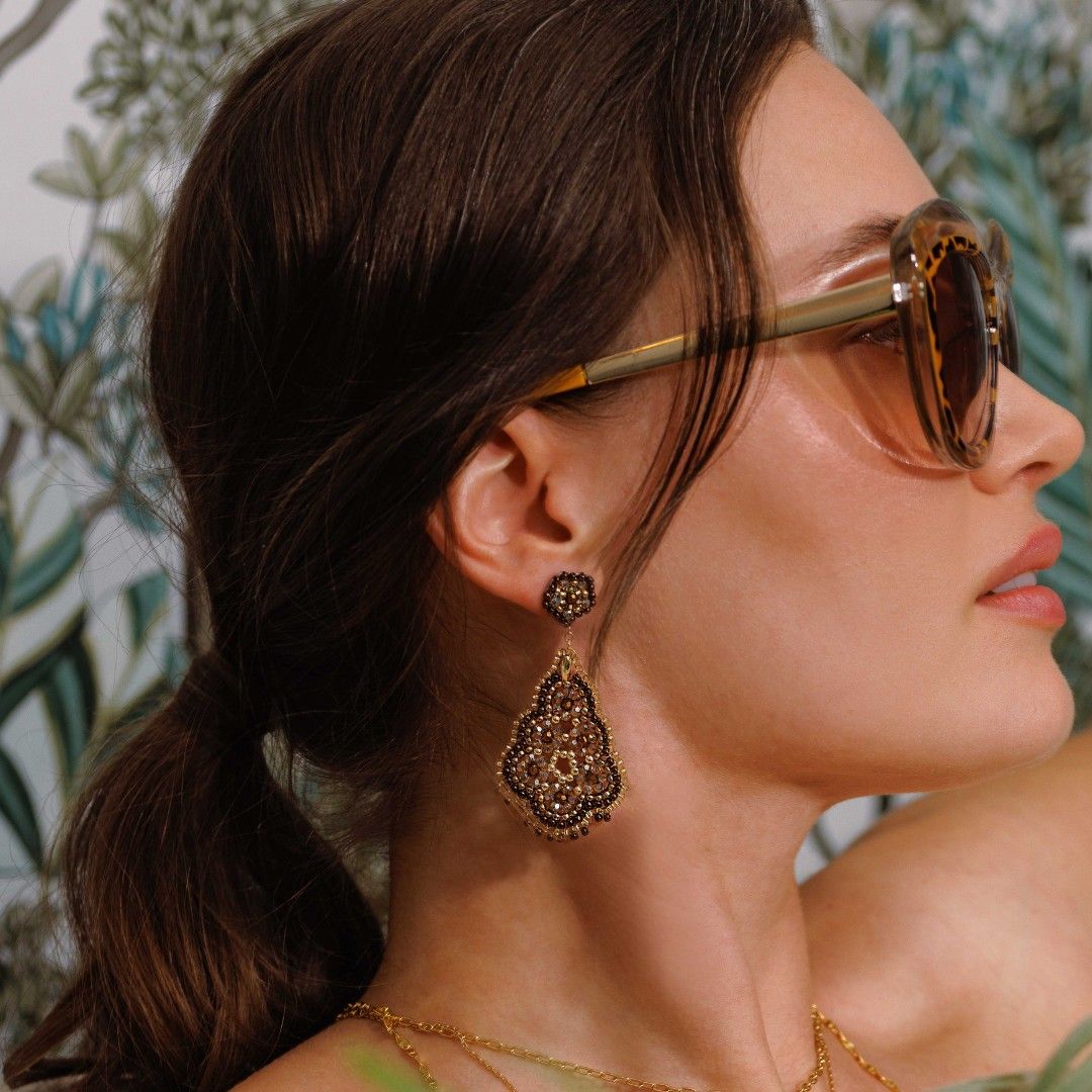 Einzigartige handgefertigte blütenförmige Tropfen-Ohrstecker in wunderschönen Brauntönen; super leichter Tragekomfort. Gesamtlänge ca. 6,5cm