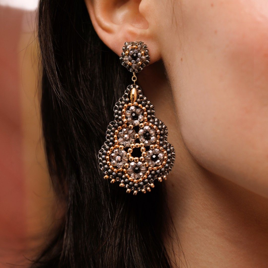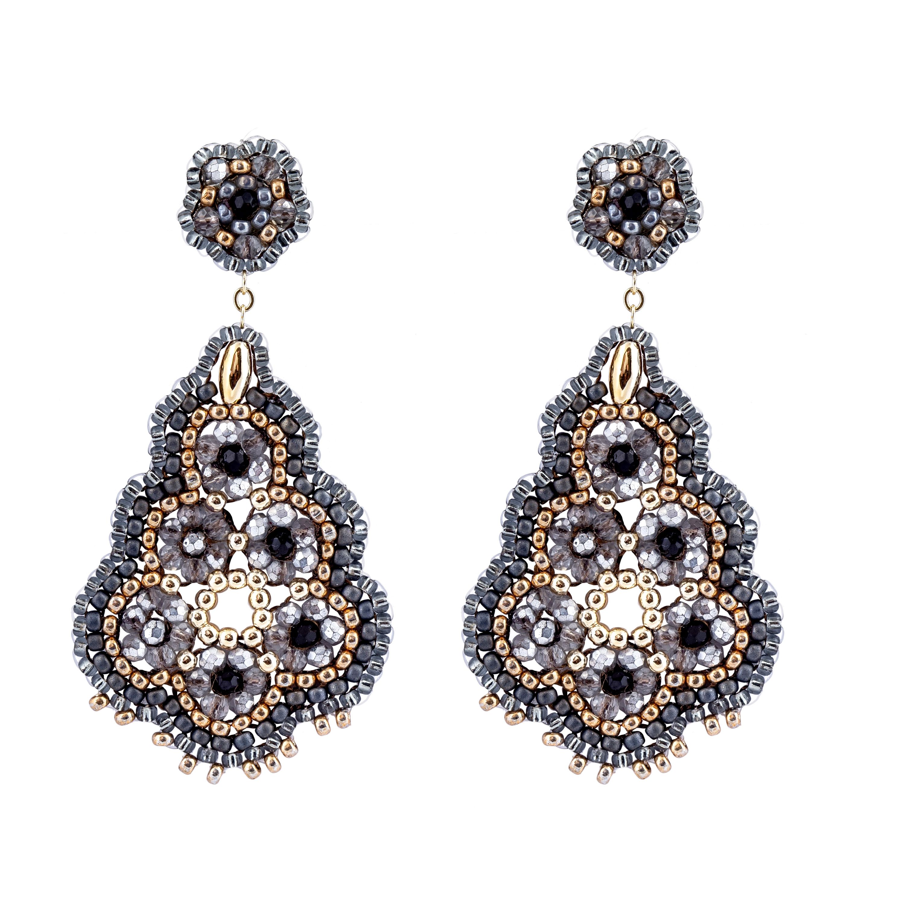 Einzigartige handgefertigte blütenförmige Tropfen-Ohrstecker in wunderschönen Grautönen; super leichter Tragekomfort.