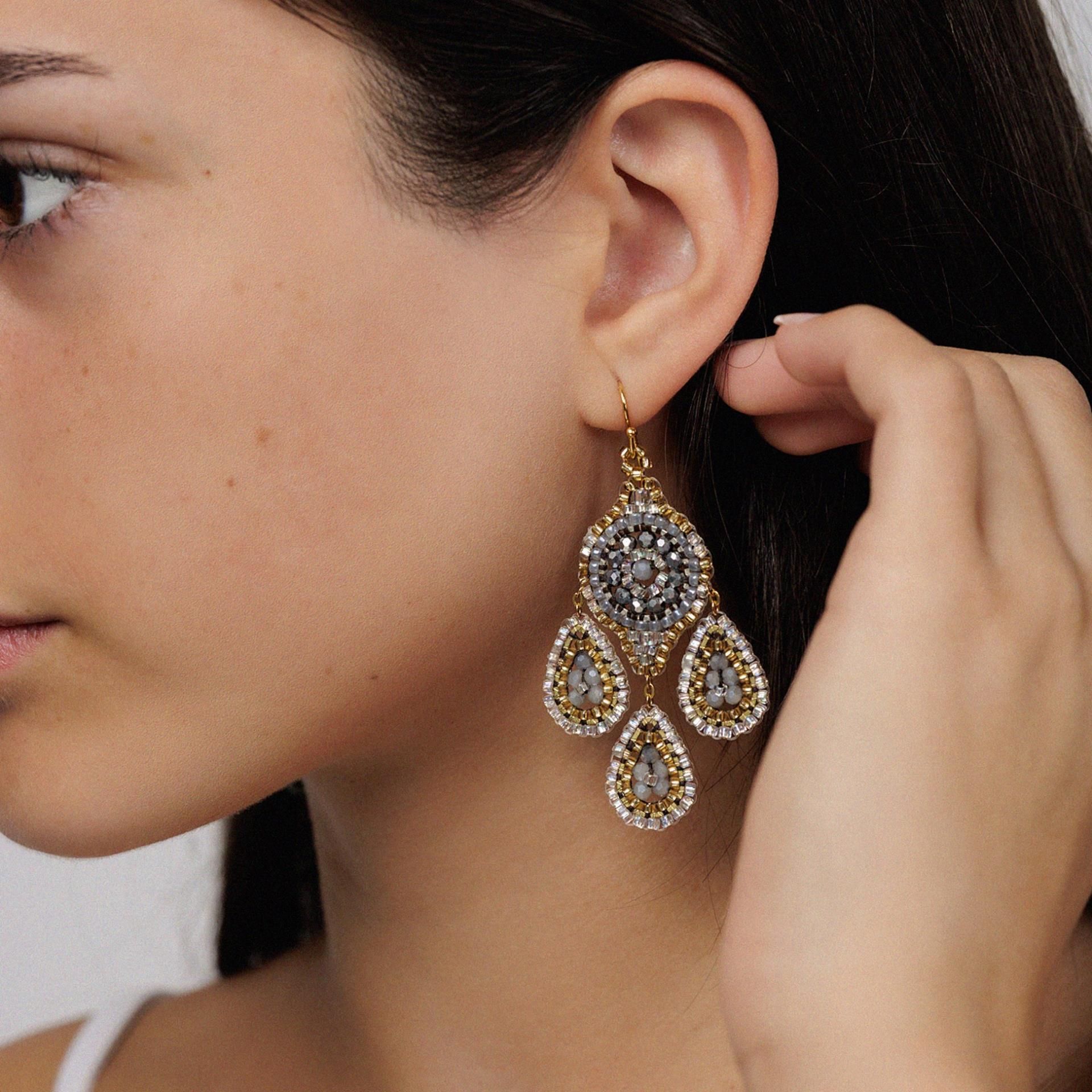 Einzigartige handgefertigte Ohrringe in wunderschönen Grau/Goldtönen; super leichter Tragekomfort, Gesamtlänge ca. 6,7cm.