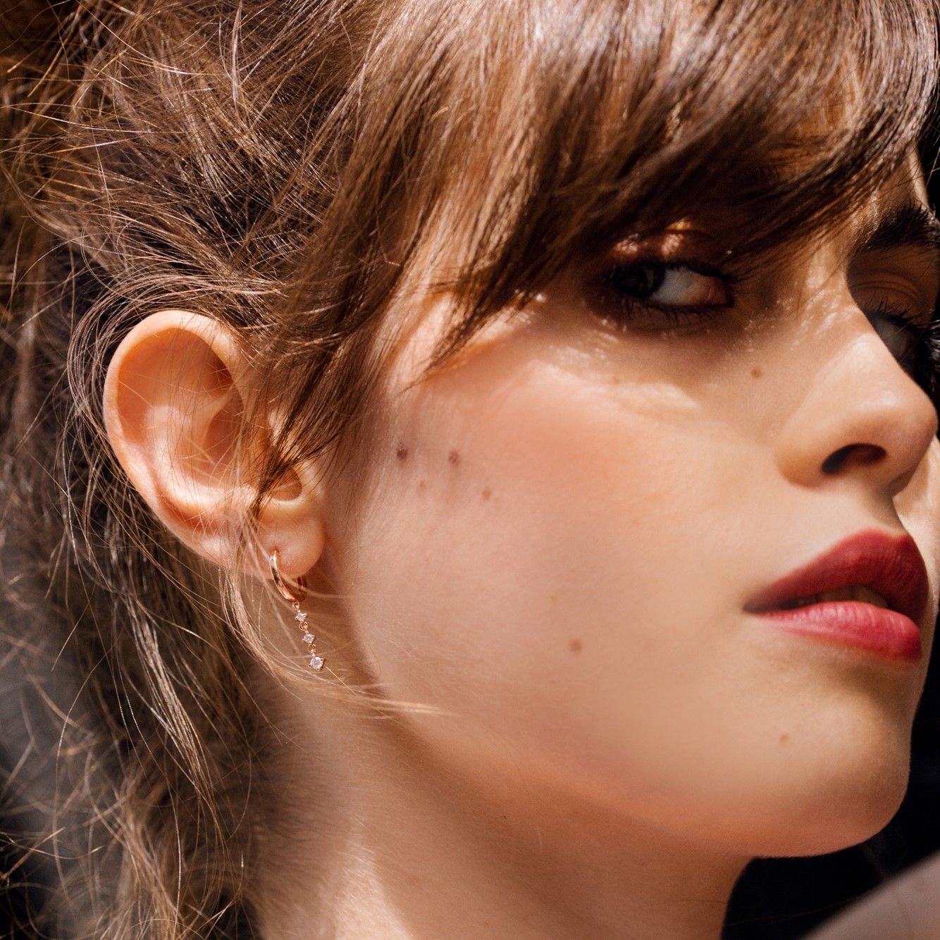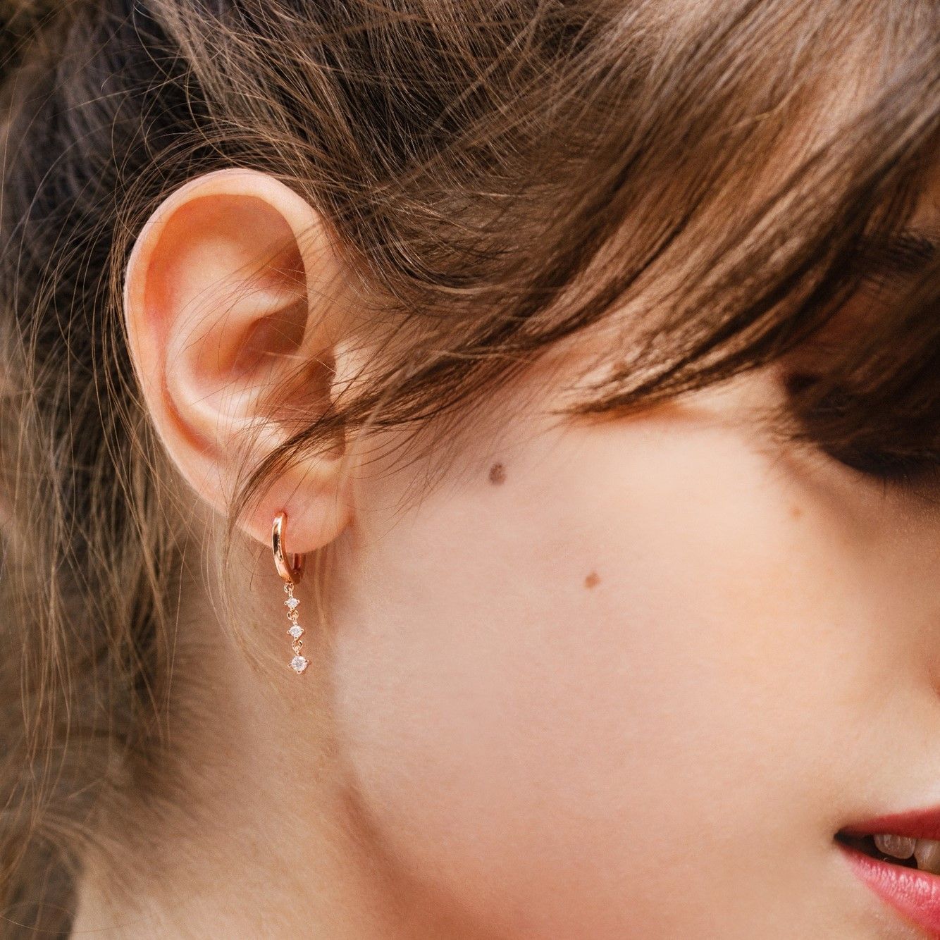 Filigran und bezaubernd: Die CAJOY Kreolen mit Kristallkettchen. Das Kettchen ziert 3 Kristalle. Länge: 2,5 cm