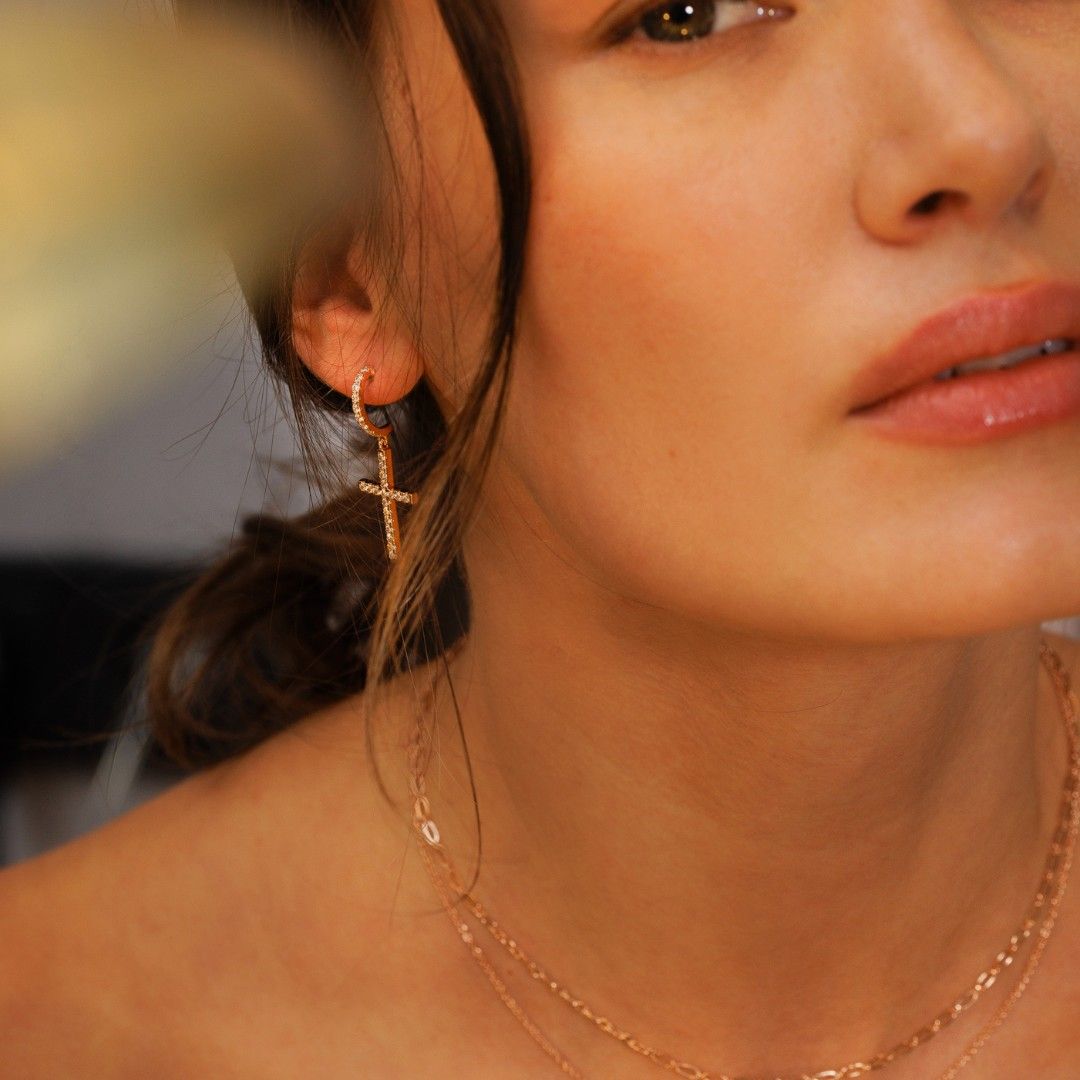 Eyecatcher: unsere rosé vergoldeten Kreuz-Ohrringe lassen die Herzen Höher schlagen.