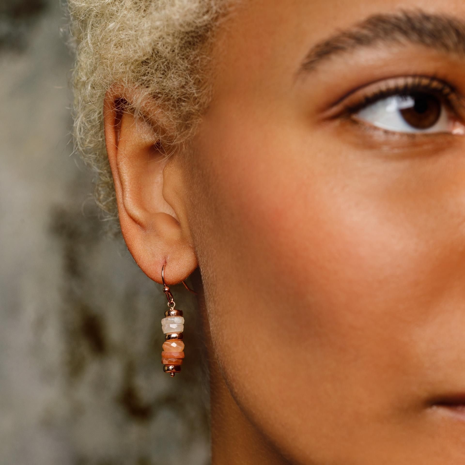 Die zarten Ohrhänger mit echten Mondsteinen in in rosé/weißem Verlauf sind der perfekte Begleiter für jeden Tag. Passendes Armkettchen erhältlich!
