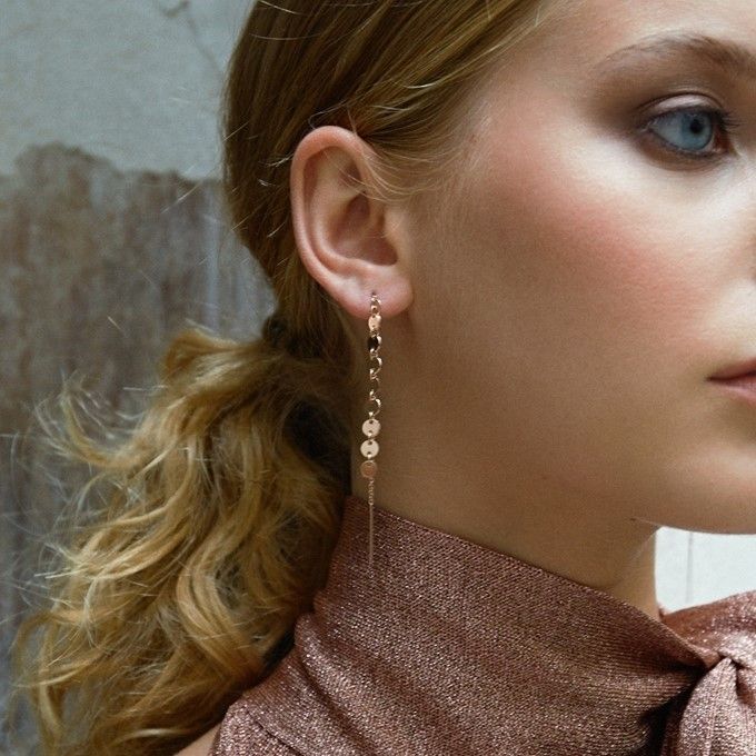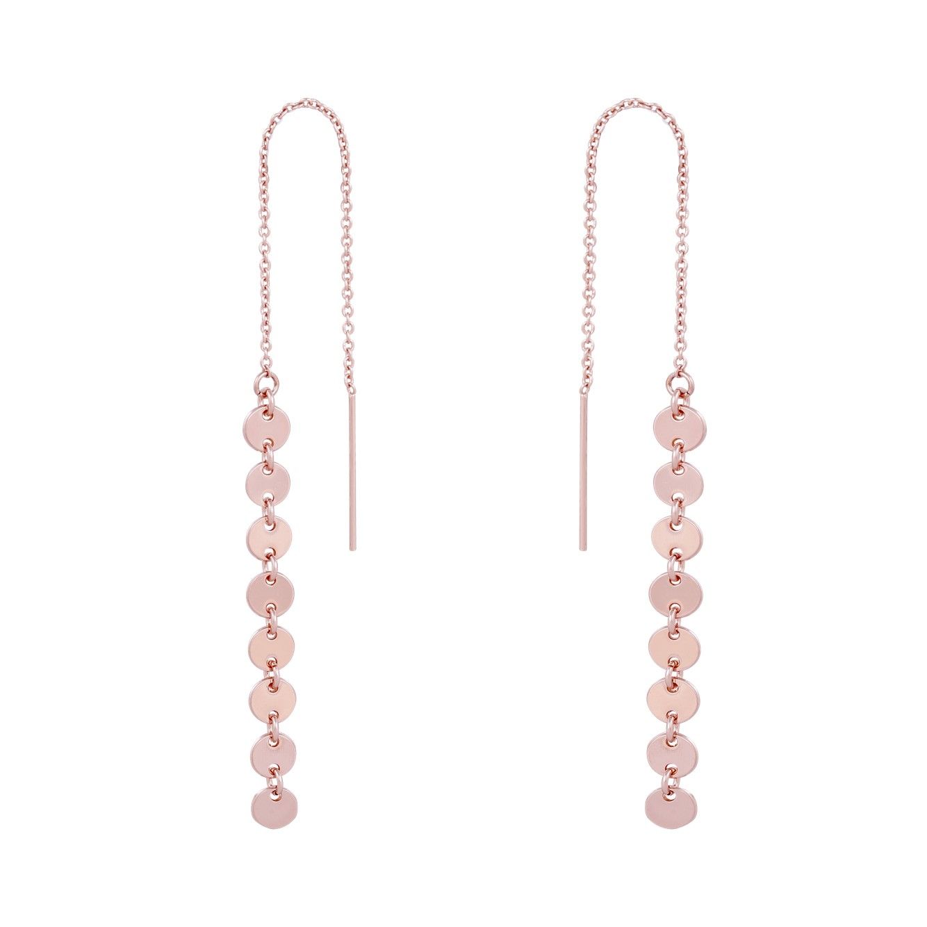 Bei jedem Schritt schwingen diese rosé vergoldeten CAJOY Ohrringe wunderschön mit. Die Ohrringe bestehen aus einer Kette welche durch das Ohr gezogen wird. Die kleinen Plättchen, die an dem Kettchen hängen sind nicht nur ein toller Eyecatcher, sondern verleihen den Schmuckstücken auch das besondere Etwas. Länge: 6 cm