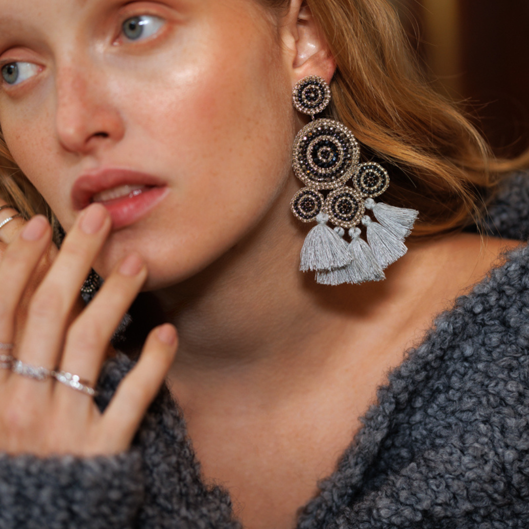 Unsere brandneuen Bohos mit Tassels sind das Highlight der Saison. Trotz ihrer Größe superleicht zu tragen und auf jeden Fall ein Eyecatcher. Länge: 10,5cm