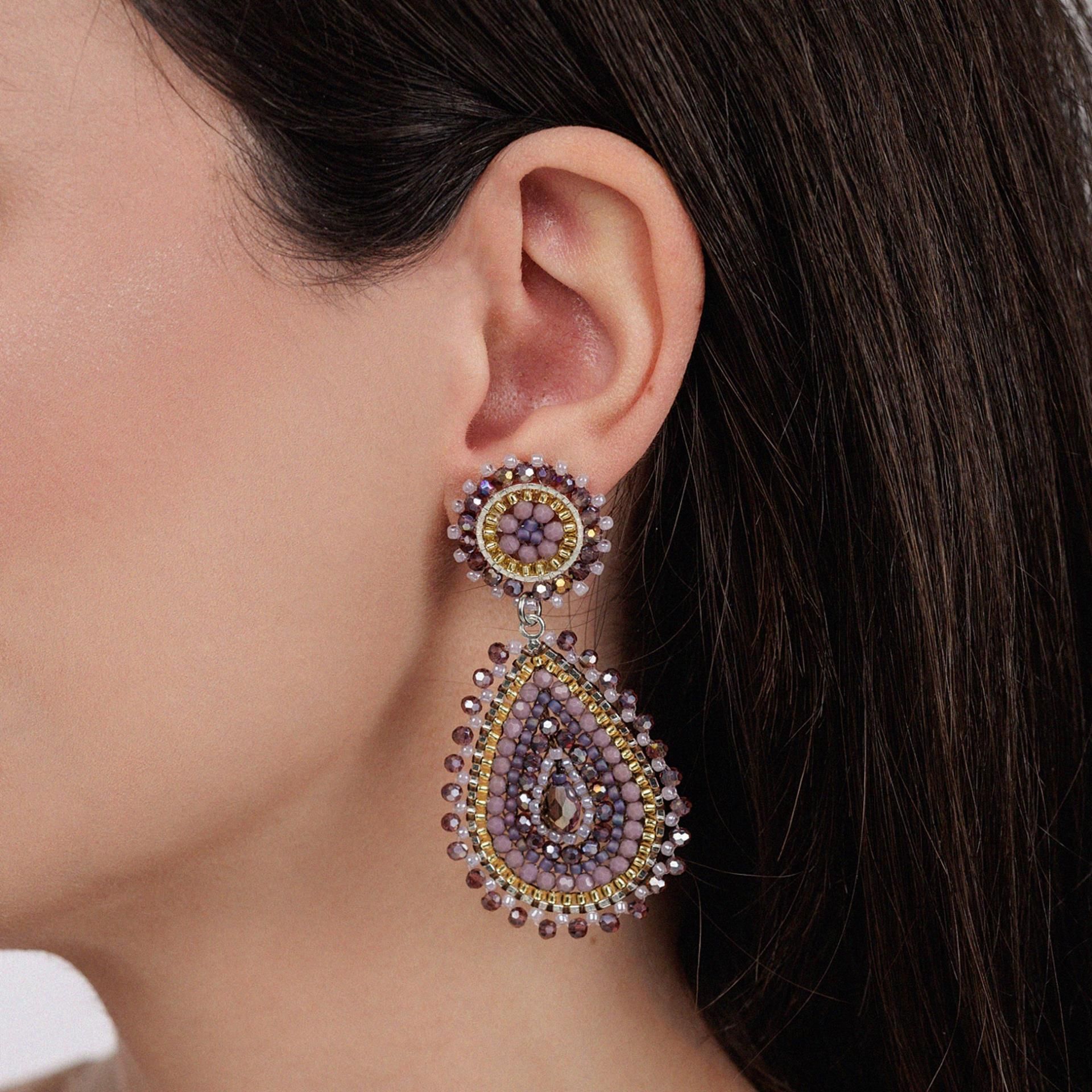 Diese wunderschönen handgefertigten Ohrstecker mit japanischen Seed Perlen ziehen mit ihren wunderschönen Violett-Tönen alle Blicke auf sich. Länge ca. 8 cm. Limited edition!